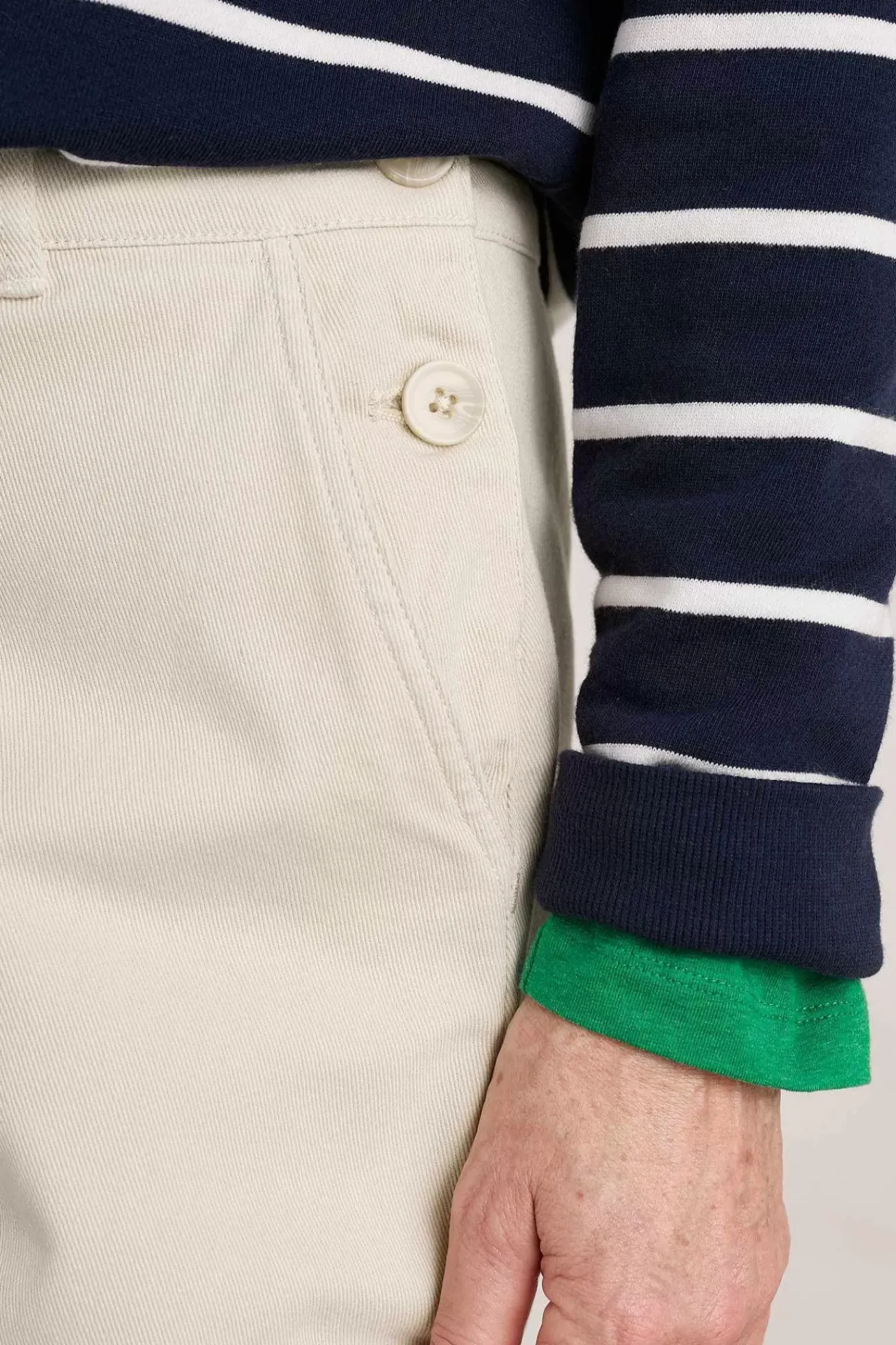 Our Much-Loved Hannafore Wide Leg Trouser In A New, Full-Length Fit. With A Neat Flat Front And Side Button Fastening, This Timeless Style Has Been Garment-Dyed For Rich Colour And Can Be Worn Cuffed To Show Off Your Footwear. Made From Cotton With A Touch Of Stretch.