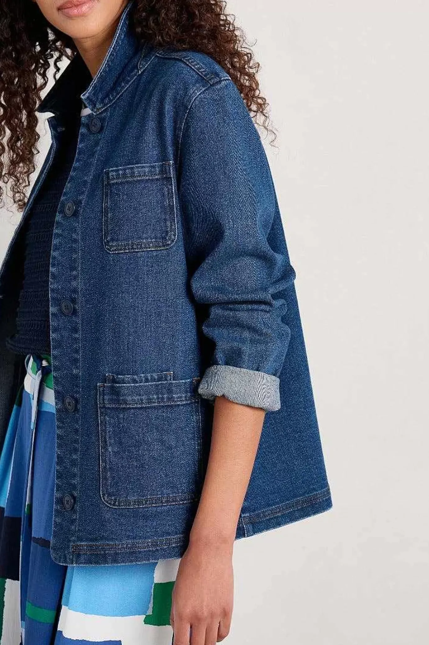 A Jacket You’Ll Have In Your Wardrobe For Years, Beautifully Crafted From Our New Low-Impact, Organic Cotton Denim. The Timeless Silhouette Is Inspired By Worker Jackets With A Relaxed Shape, Button Front, Three Patch Pockets And Small Coin Pocket. A Stylish Layer That Will See You Through The Seasons, Wear It Over Everything From Striped T-Shirts To Print Dresses.The Soft And Characterful Denim We’Ve Used For This Jacket Is Made With Organic Cotton, Which Keeps The Soil Healthy, Produces Fewer Greenhouse Gases And Helps Support Wildlife. We’Ve Also Used A Hi-Tech, Sustainable Wash System, Which Reduces The Energy, Water And Chemicals Used In Production.