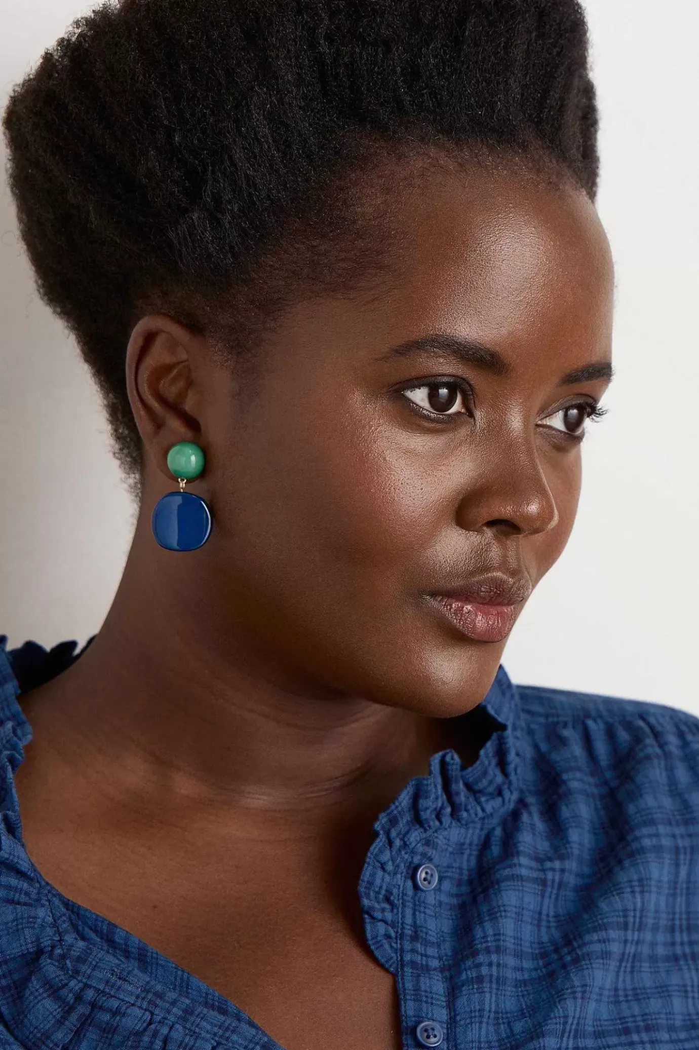 A Simple, Stylish Earring With A Round Stud And A Light Drop Bead. The Subtle Organic Shape Of The Bead And The Vibrant, Sporty Colours Are Made To Match In Effortlessly With This Season’s Clothing.