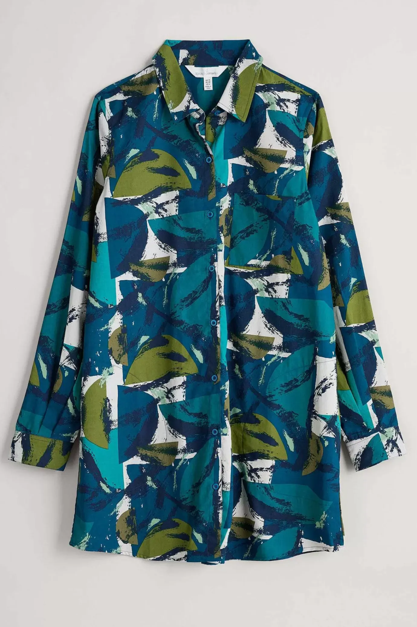 A Long Organic Cotton Shirt With A Vibrant Print And Subtle Slub Texture, A Patch Pocket On The Chest And Handy In-Seam Pockets At The Hips. We Love This Style Worn Loose Over Leggings Or Narrow Cropped Trousers.