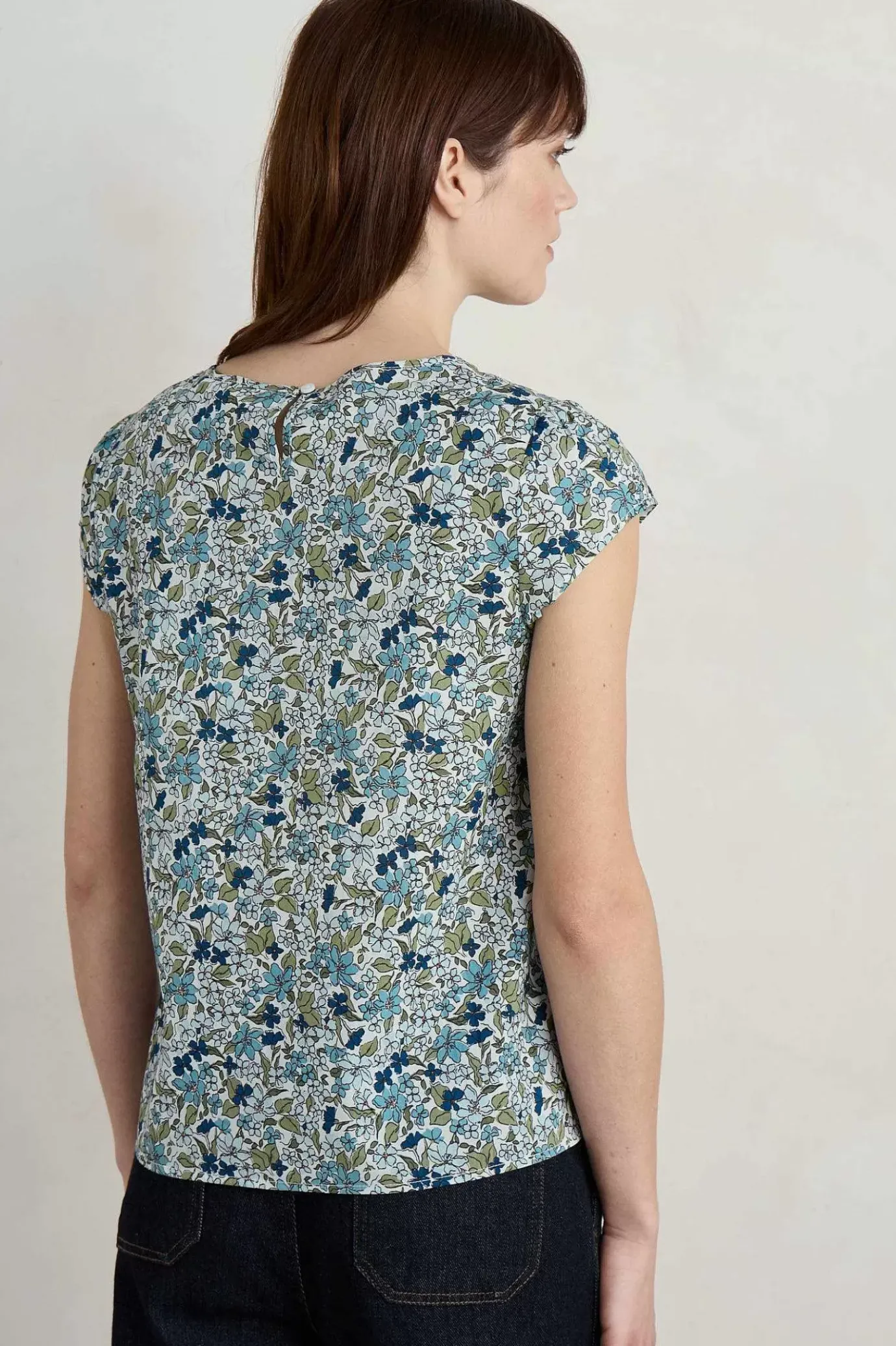 A Pretty Little Top Made From Soft, Cool Cotton Voile. Our Garden Gate Top Is Semi-Fitted With A Scoop Neck And Cap Sleeves. It’s Finished Off With Gentle Gathers On The Front To Give It Shape, And A Keyhole Opening With Button Loop Fastening On The Back.