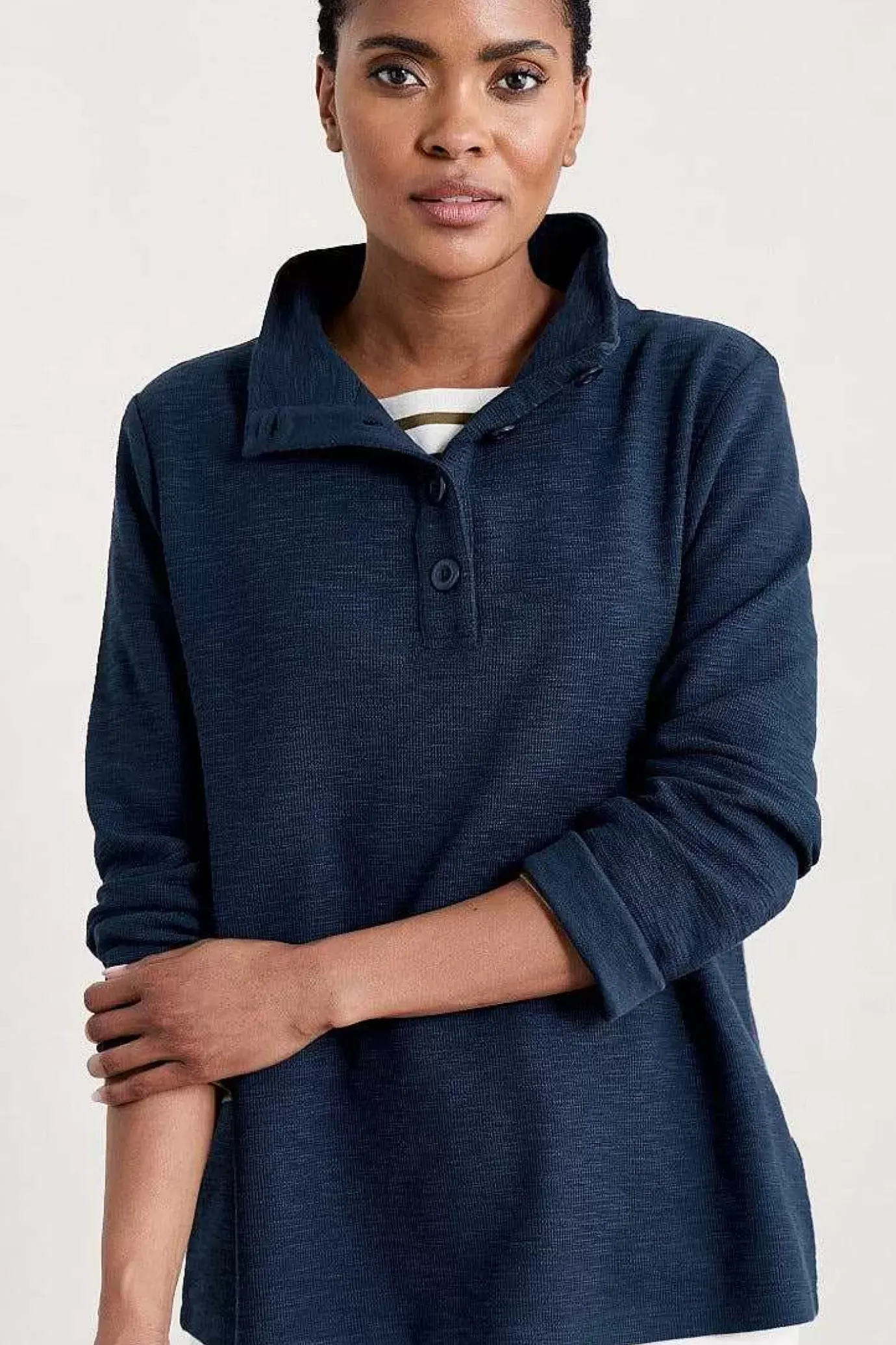 A Soft Sweatshirt Made From Loopback Jersey Cotton, With A Stand Collar That Fastens With Statement Tonal Buttons. An Easy Fit And 3/4 Sleeves Make It Perfect For Layering Through The Seasons, Whether It’s Under A Cosy Coat In Winter Or Thrown Over A Striped Top On Long Summer Evenings.