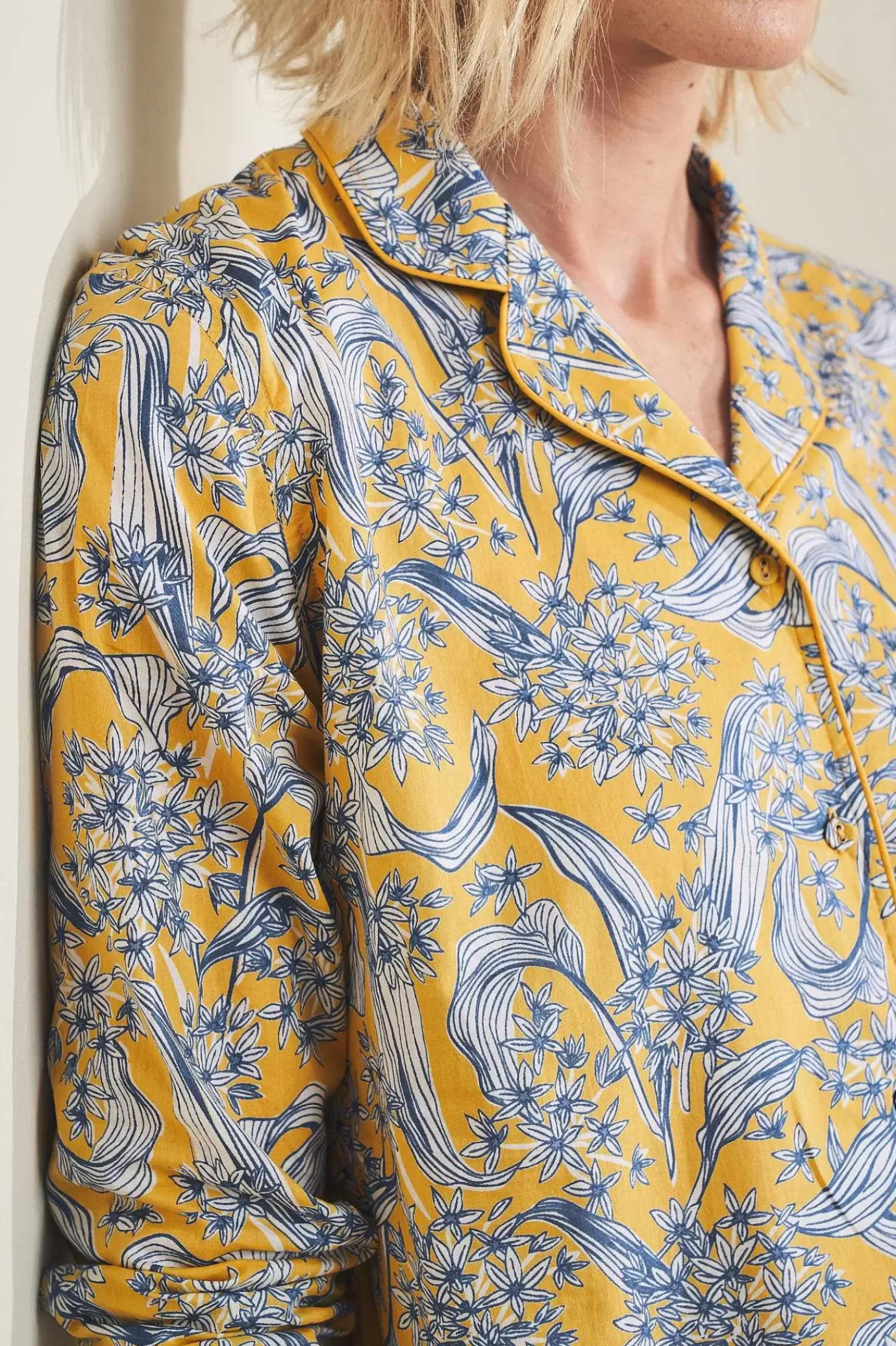 Made From Soft, Lightweight Cotton Voile, Our View Point Pyjamas Have A Classic Shirt Style Top With Long Sleeves, Contrast Piping And Two Patch Pockets. The Wide Leg Trousers Have An Elasticated Back Waist With A Drawstring For A Comfy Fit. Generous Pockets Add The Finishing Touch.